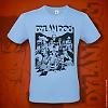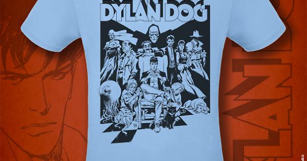 Una t-shirt di color celeste che riproduce il frontespizio di Dylan Dog disegnato da Raul e Gianluca Cestaro.