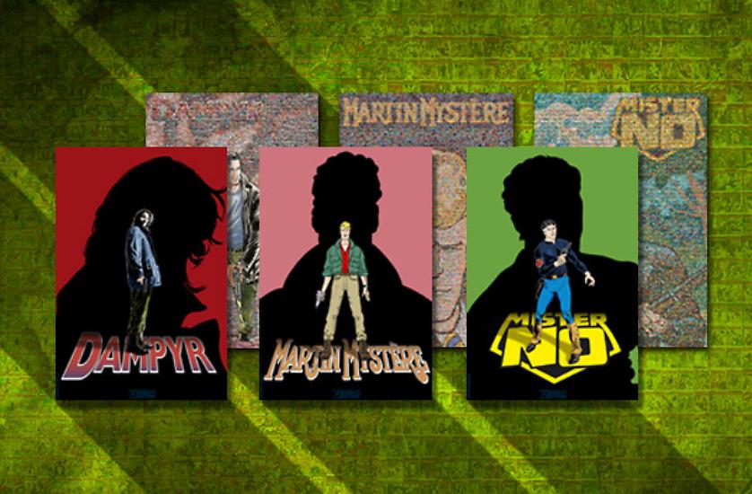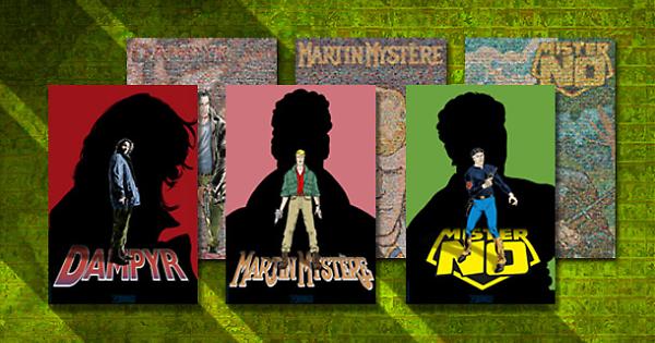 Dedicati a Mister No, Martin Mystère e Dampyr, i tre "biposter" che vi presentiamo oggi raffigurano da un lato il personaggio protagonista, e dall'altro un mosaico composto da tutte le copertine della sua serie regolare, che vanno a comporre una nuova immagine. Le illustrazioni utilizzate sono di Roberto Diso, Giancarlo Alessandrini e Michele Cropera.