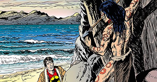 I pericolosi criminali evasi dal carcere di Punta Arenas che si sono impossessati della "Marilena" vogliono dirigersi verso il Pacifico attraversando lo Stretto di Magellano, per poi far vela verso il Nord del Cile. Ma non hanno fatto i conti con Zagor, che riesce a liberarsi dalla cabina della nave dove è stato rinchiuso. Lo scontro fra lo Spirito con la Scure e i banditi ha conseguenze inattese per tutti e la lotta si sposta nella selvaggia e inesplorata Terra del Fuoco, dove si dice vivano popolazioni dedite al cannibalismo che non gradiscono intrusioni nel loro territorio...